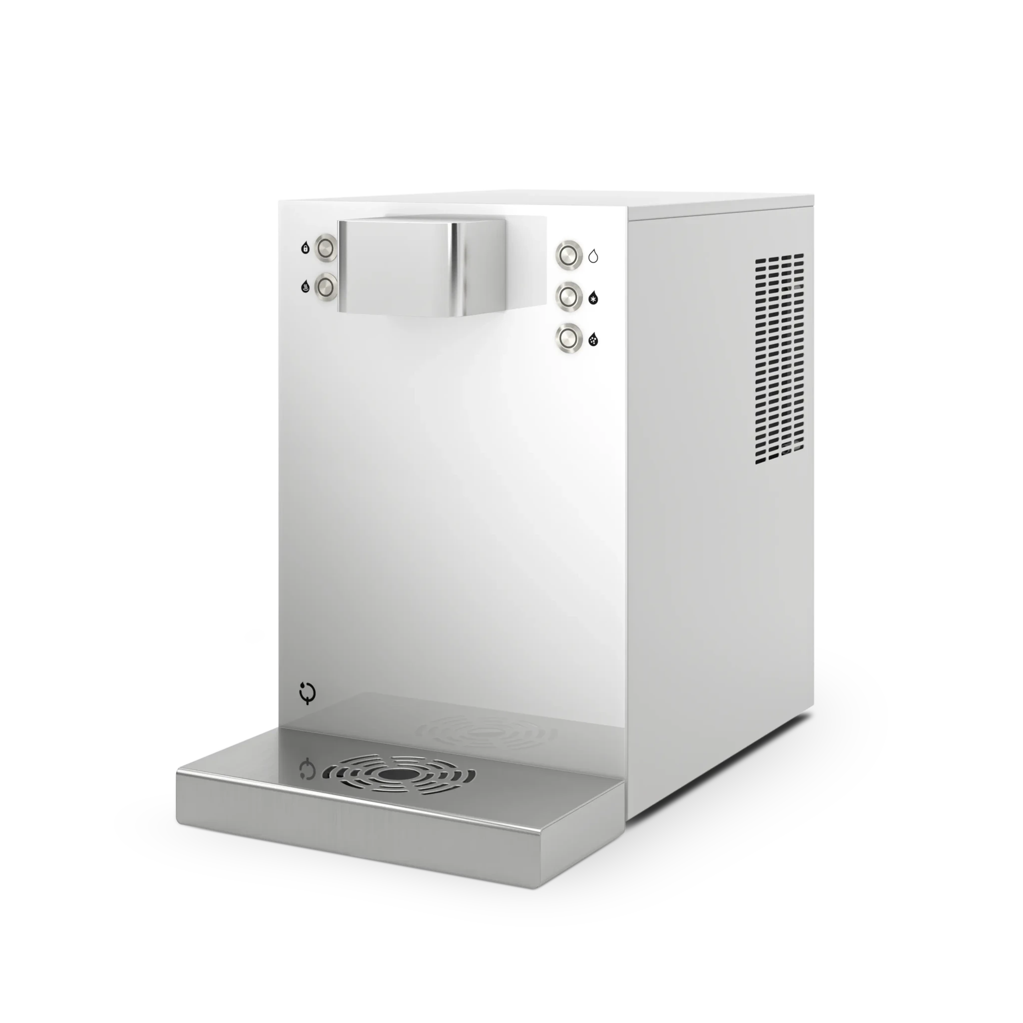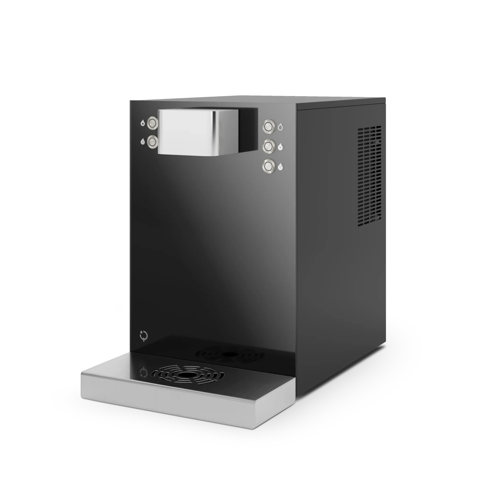 En vattenlösning med förstklassig design och högsta kvalitet, som toppmodern pekskärm, tyst drift – allt för en smidig och stilren användarupplevelse. Tekniken är diskret integrerad och passar in i de flesta miljöer. Välj mellan upp till fyra olika vattenalternativ: stilla, både rumstempererat och kylt, lätt kolsyrat och kolsyrat